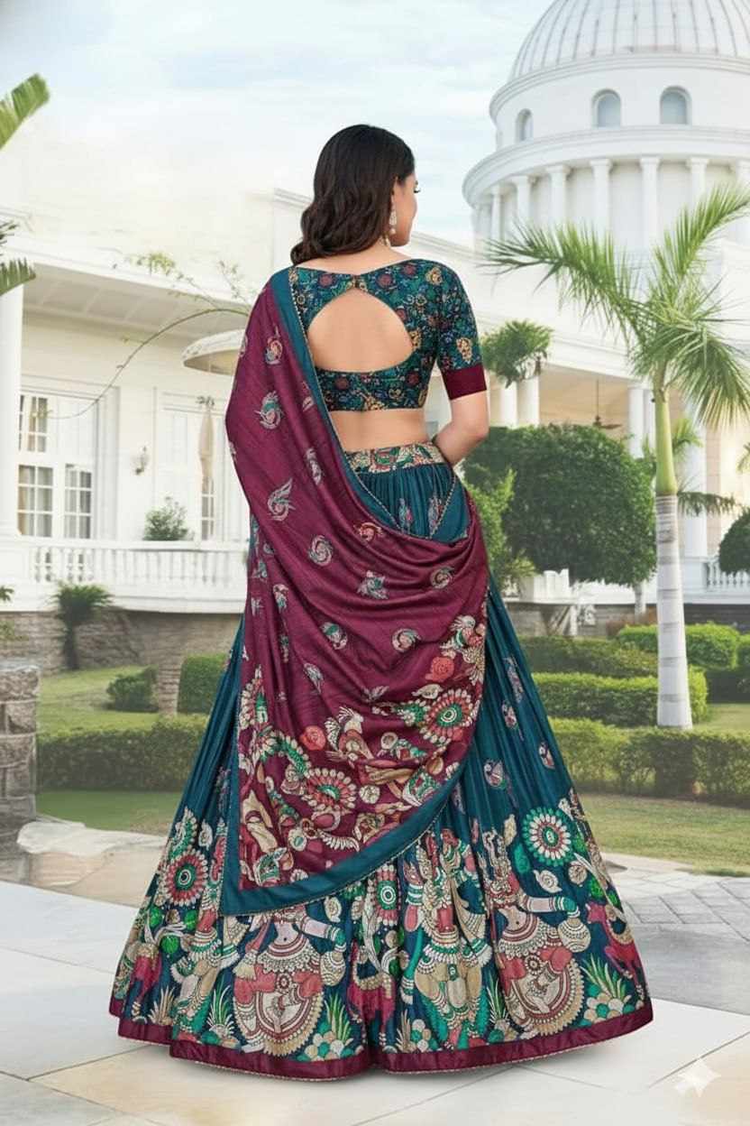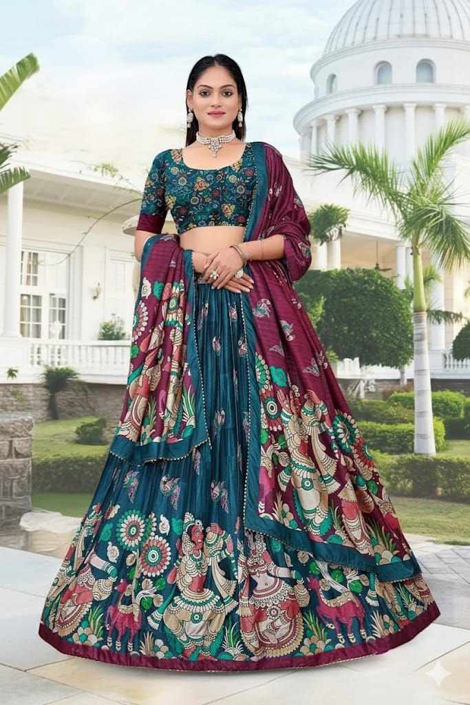 | Name : | PIYU 16-2 Silk Digital print Rama Colour Lehnga |