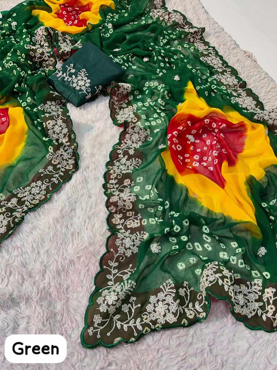 PIYU P1038 MULTI COLOR GREEN BANDHANI Saree