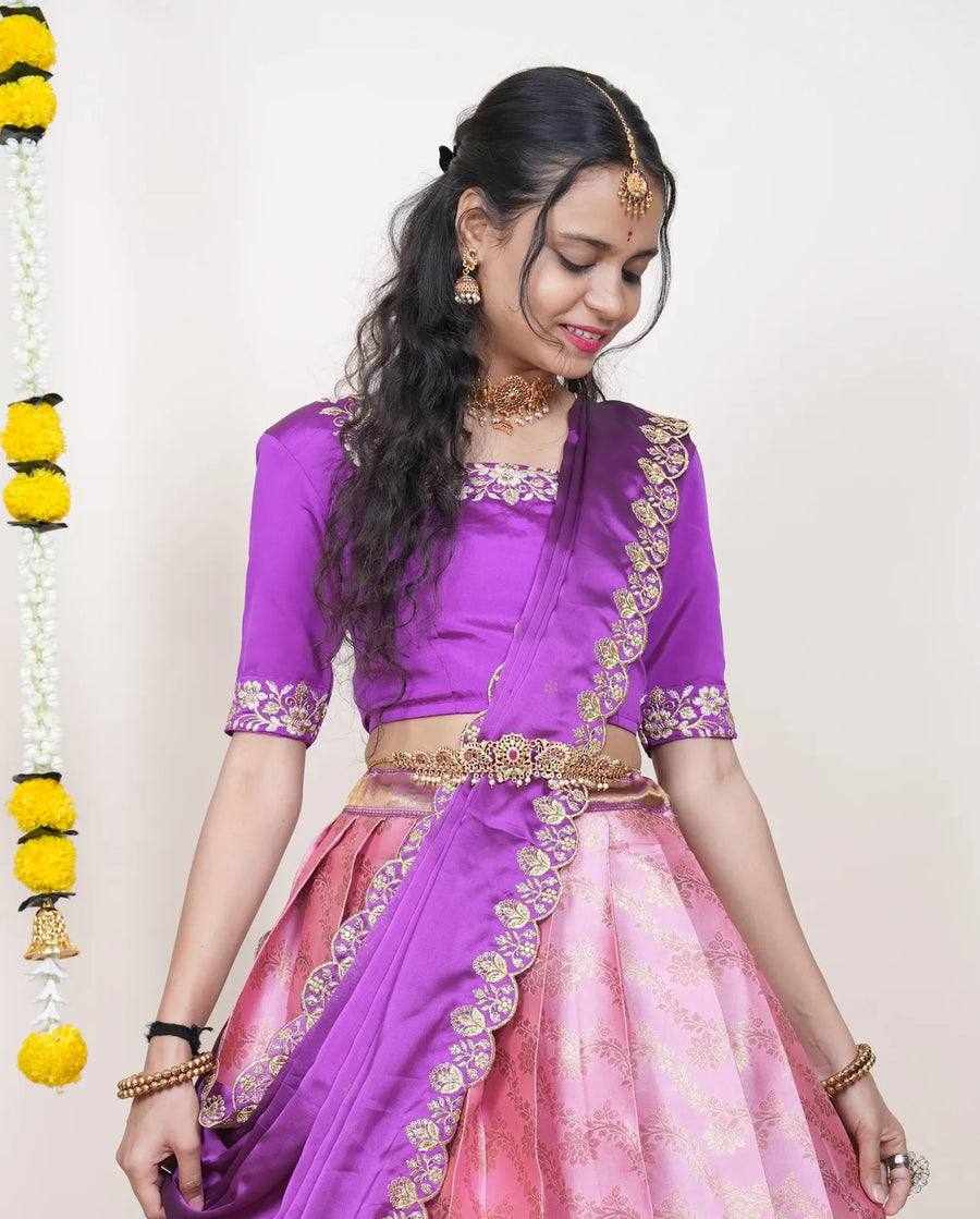 Reviews for KPW 332 Pink Kanjiveram Silk Zari Lehanga